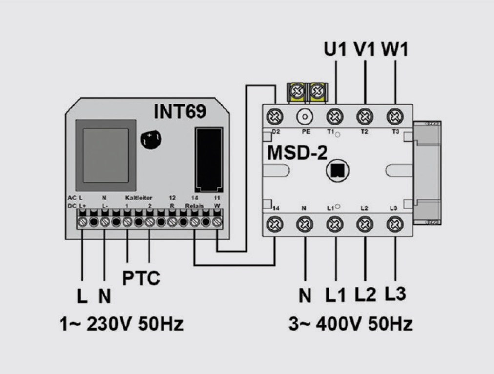 Устройство защиты трехфазных электродвигателей, оборудованных терморезисторами (PTC). MSK состоит из автоматического выключателя и защитного реле.