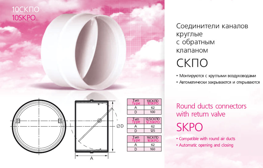 Соединитель круглых воздуховодов с обратным клапаном D160