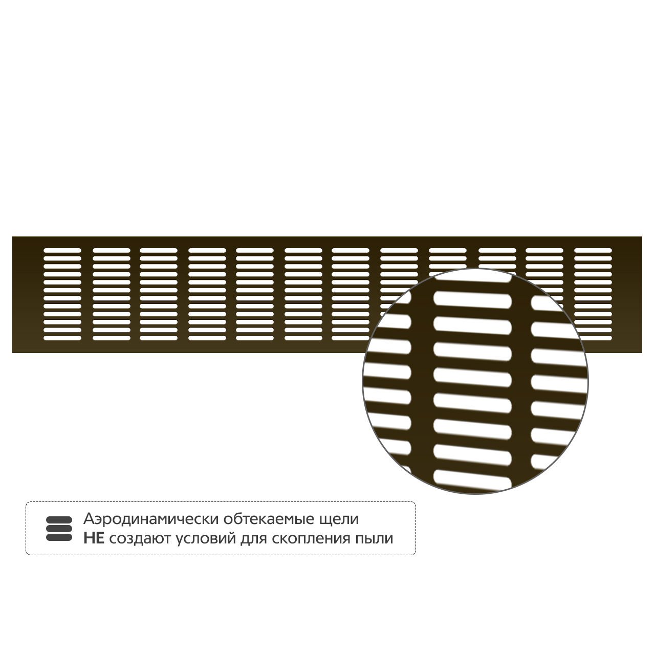 • Аэродинамически обтекаемые щели не создают условий для скопления пыли