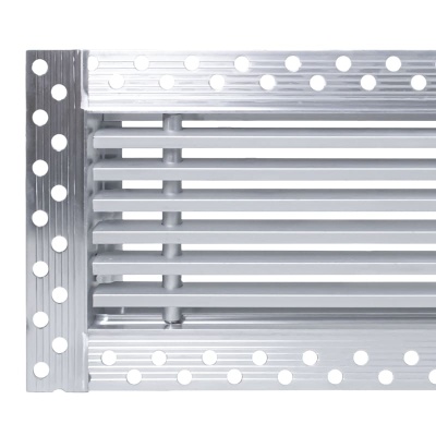Данная решетка подходит для монтажа на любую поверхность под финишную отделку. Рама оснащена «полкой» 1,9 мм и рифлеными краями для большей адгезии финишного материала – шпатлевки, цемента. Решетка имеет съемную центральную часть с декоративным экраном. Она крепится к корпусу прочными металлическими тросиками, легко снимается для очистки и удобного обслуживания.