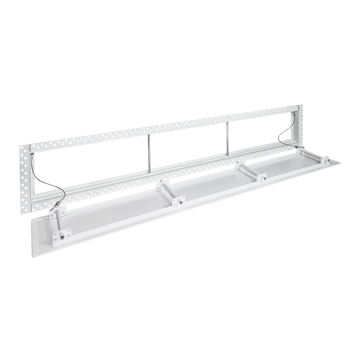 Данная решетка подходит для монтажа на любую поверхность под финишную отделку. Рама оснащена «полкой» 1,9 мм и рифлеными краями для большей адгезии финишного материала – шпатлевки, цемента. Решетка имеет съемную центральную часть с декоративным экраном. Она крепится к корпусу прочными металлическими тросиками, легко снимается для очистки и удобного обслуживания.