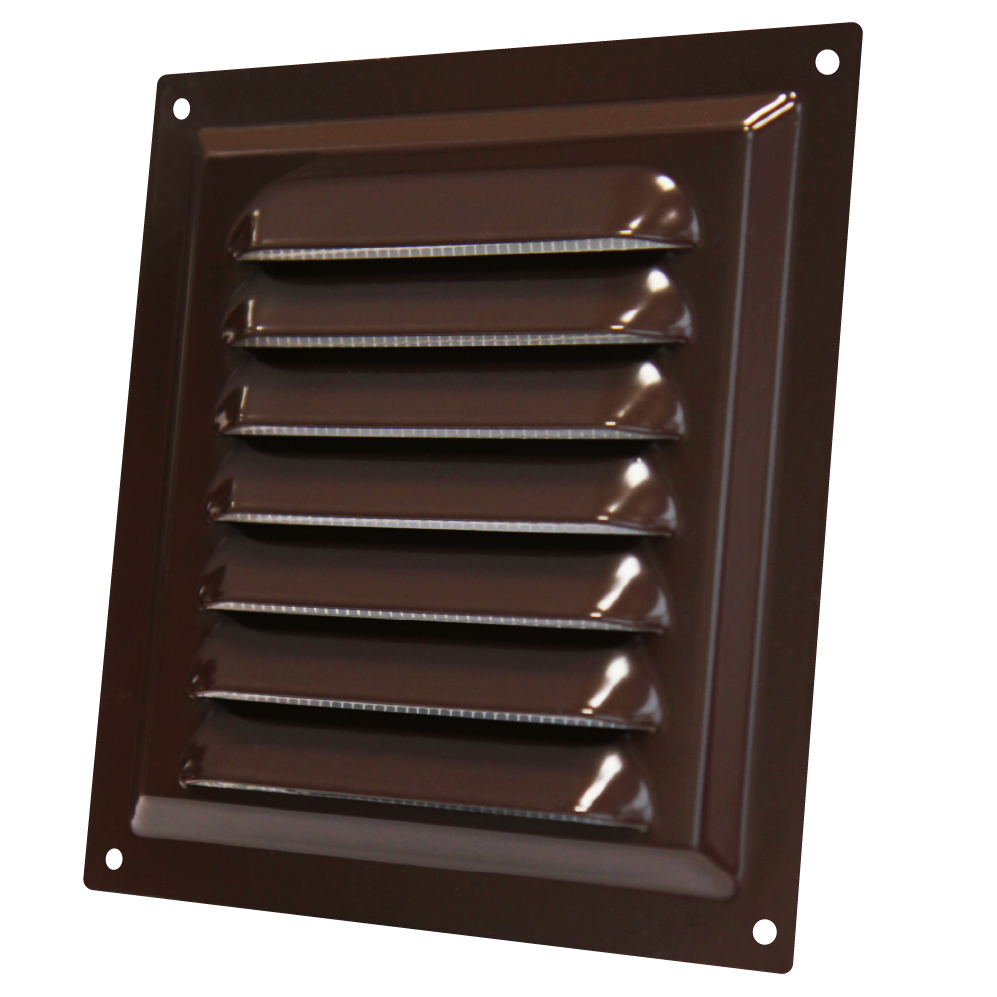Вентиляционная решетка МЭ изготавливается из оцинкованной стали с покрытием полимерной эмалью. Имеет наклонные жалюзи и антимоскитную сетку для защиты от насекомых. Сетка устанавливается в специальном углублении.
