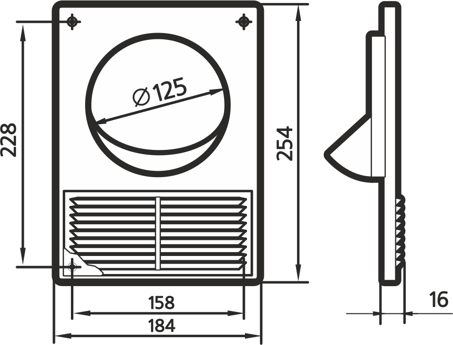 Решетка вентиляционная 184х254 с фланцем D125